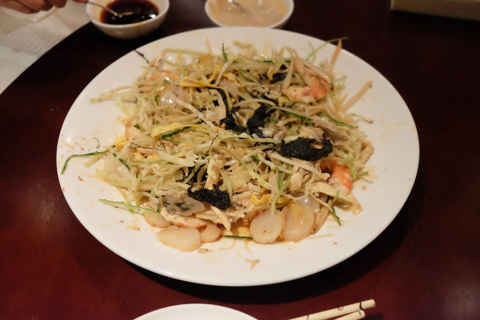 其實是撈起,配料有帶子、蝦仁、青瓜絲、雞肉、蠔豉及髮菜,澆上麻醬後撈起,既好意頭又惹味。