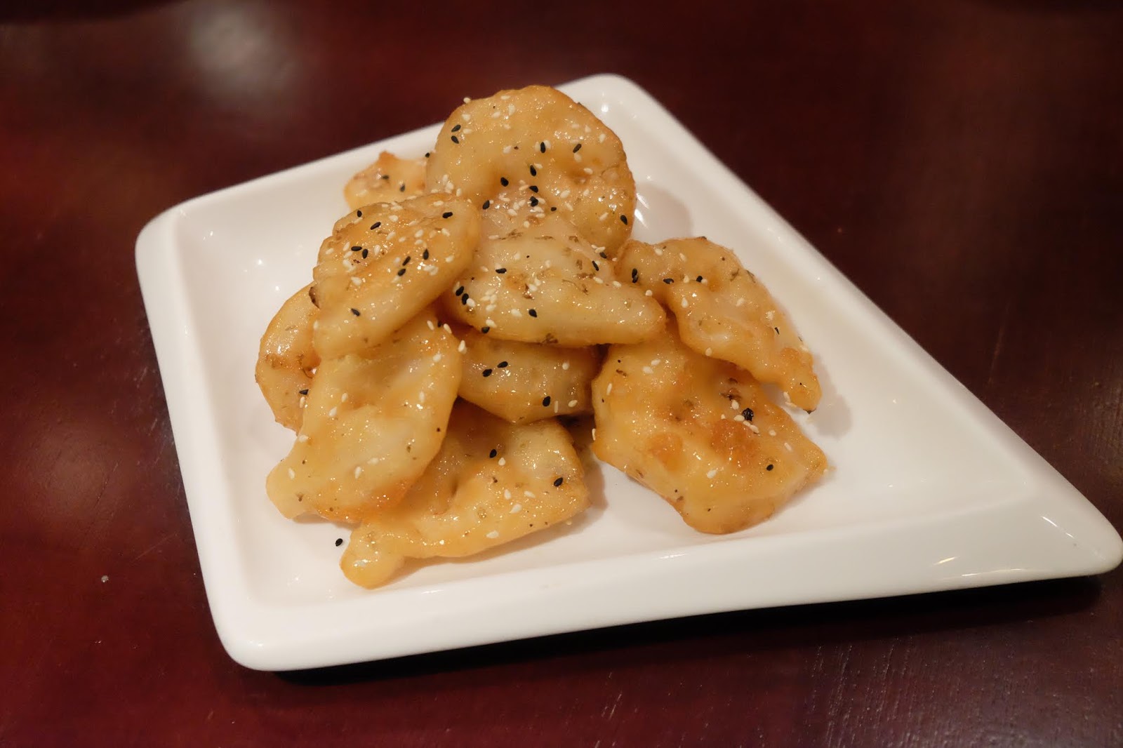 並非傳統做法,而是蘸上脆漿炸過,再用桂花糖堆過,但又不覺得膩。