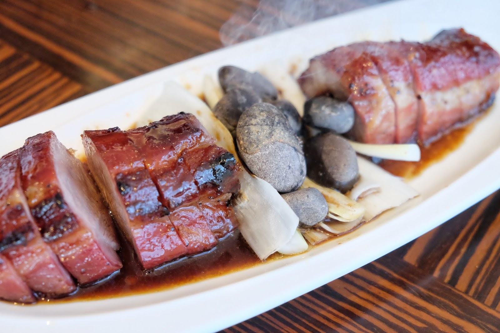 作為店方名物,當然不能小覷,將部份醬油澆在熱燙的石春上,營造輕煙繚繞的效果,叉燒烤得邊位微焦,吃起來多了一份幽香,而且質地不會盲目追求死稔,反而是帶嚼口,好啱加碗白飯伴食。