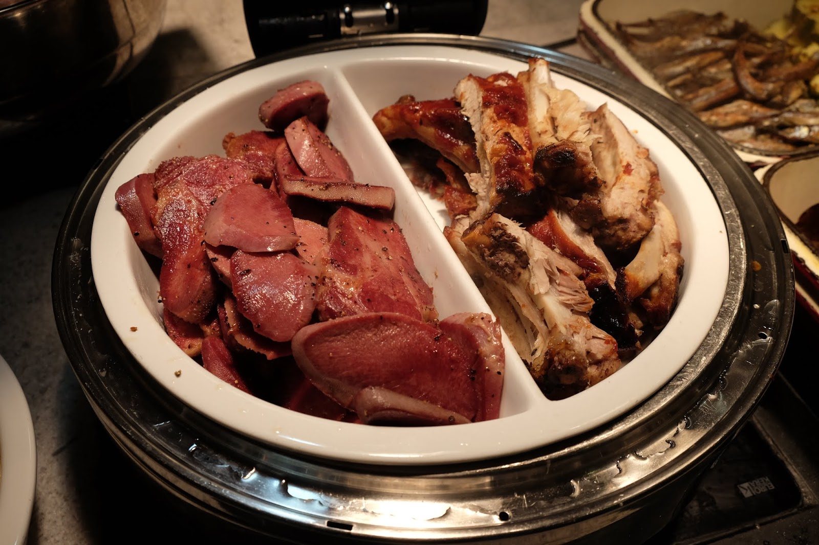 有酸辣鳳爪、涼伴貢菜、桂花蕃茄、雪裡紅、麻辣蓮藕片、煙燻三文魚、蒜味凍腸、蘑菇腸及青胡椒雞肉,論口味幾啱中國人。