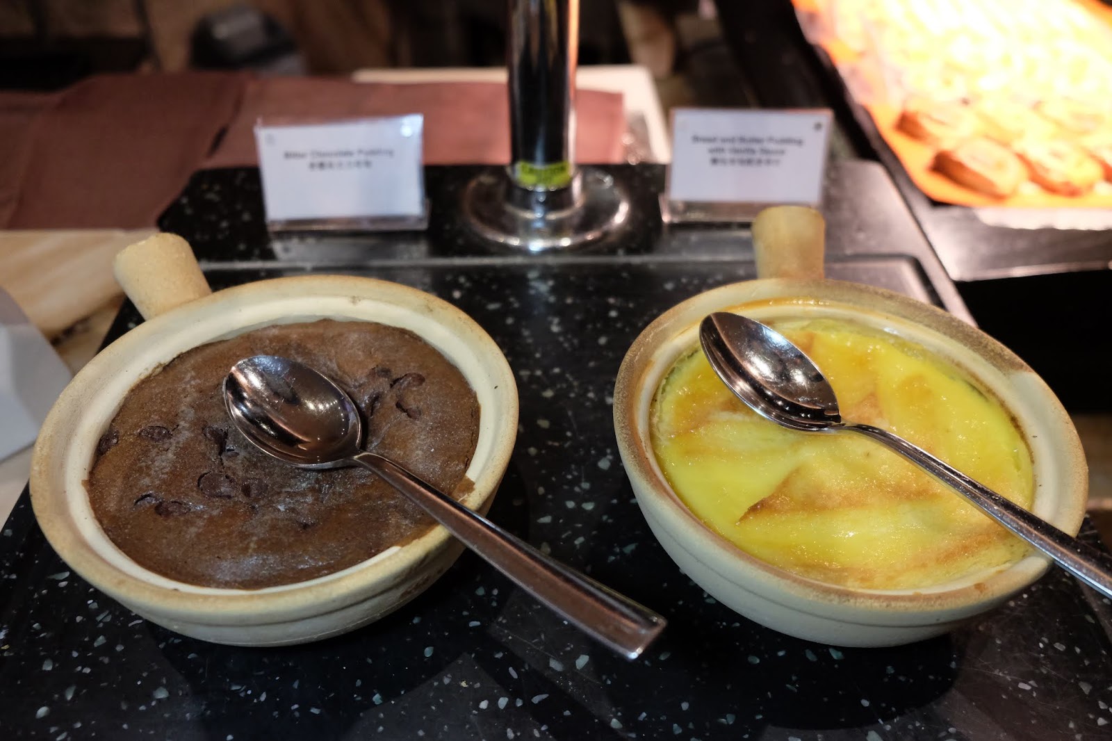 整個甜品區有香橙甘筍蛋糕、核桃布朗尼蛋糕、班蘭戚風蛋糕、日式芝士蛋糕、阿華田流心蛋糕、曲奇芝士蛋糕、啡走奶凍、芒果布甸、香檸蛋散、香濃朱古力布甸、麵包布甸配香草汁、冬甩、葡撻、豆腐花及港式雞蛋仔。