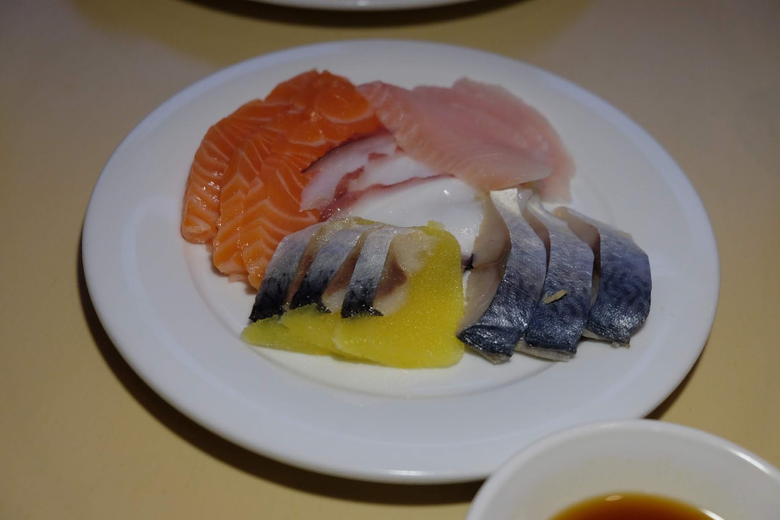 有三文魚、八爪魚、鯛魚、希靈魚及鯖魚,是日腸胃有點不適,生冷食物還是少踫。