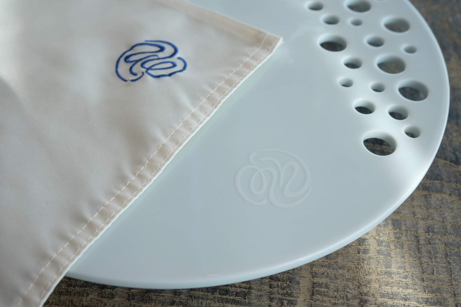 用餐的碟子設計獨特,一排小孔原來有實際用途,三款餐前小食的盛器,底部有圓柱,客人可以任意插在碟上之洞孔內,自己打造出個人風格的擺盤,很欣賞這具心思的設計。