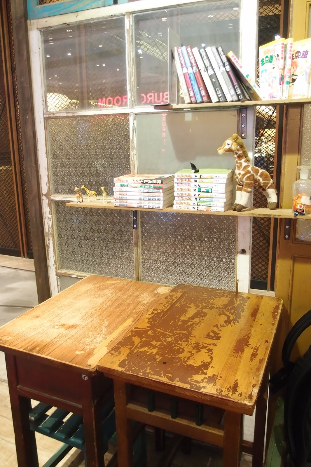 位於美麗華商場內的「小食糖」,走的是台灣小學風格,但店內椅枱都是小時候上學所用,尤其是桌面上寫滿了寫,每筆都是時光遺留下來的痕跡,的確勾起了不少回憶。