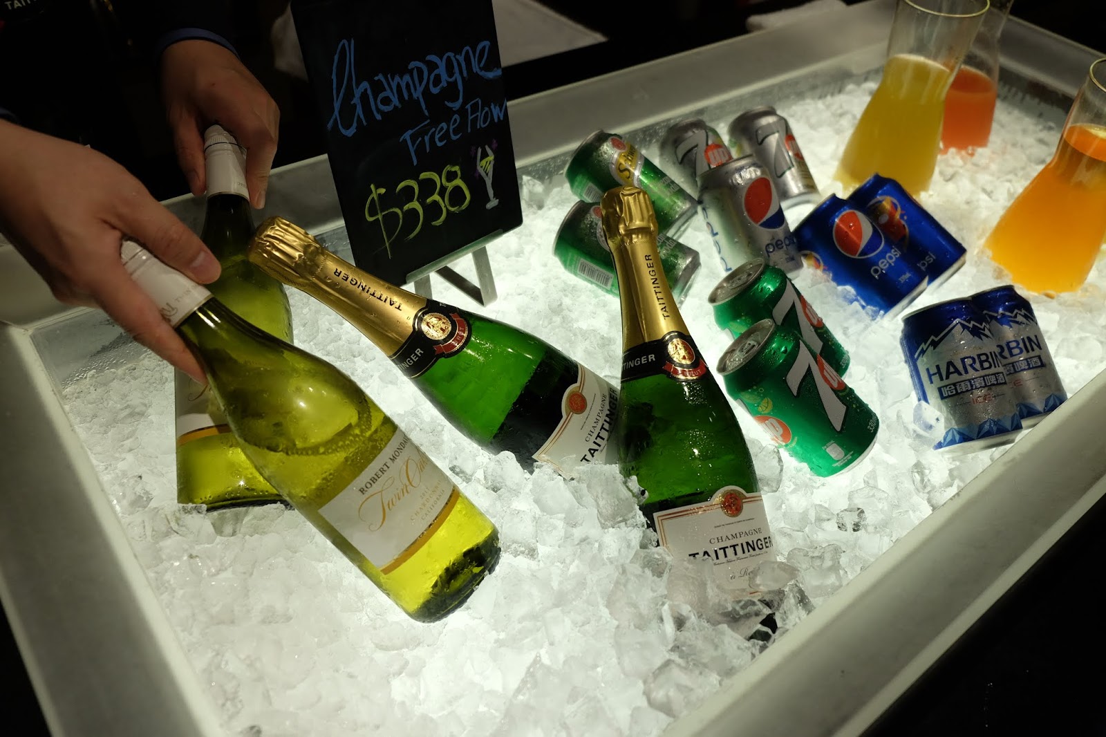 Buffet 只有簡單的一杯熱飲,想好好享受的,大可加($118)便能任飲soft drink,而加($198) ,就有任添紅白酒啤酒及soft drink,至於($338),就可享用香檳,至於清酒平少少,只須$298。