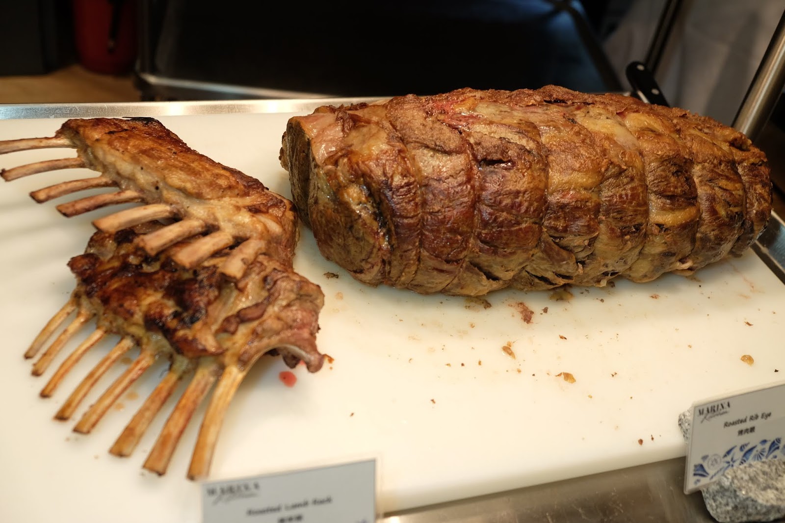 環顧香港Buffet,有活煮龍蝦的餐廳,真係一隻手數得晒,想不到Marina用上原隻鮮蹦活跳的龍蝦,蒸好後即時開邊,冒著蒸氣熱辣辣上碟,吸引度爆燈,食落爽甜彈牙,仲要係任食,單單龍蝦已回了一半位。