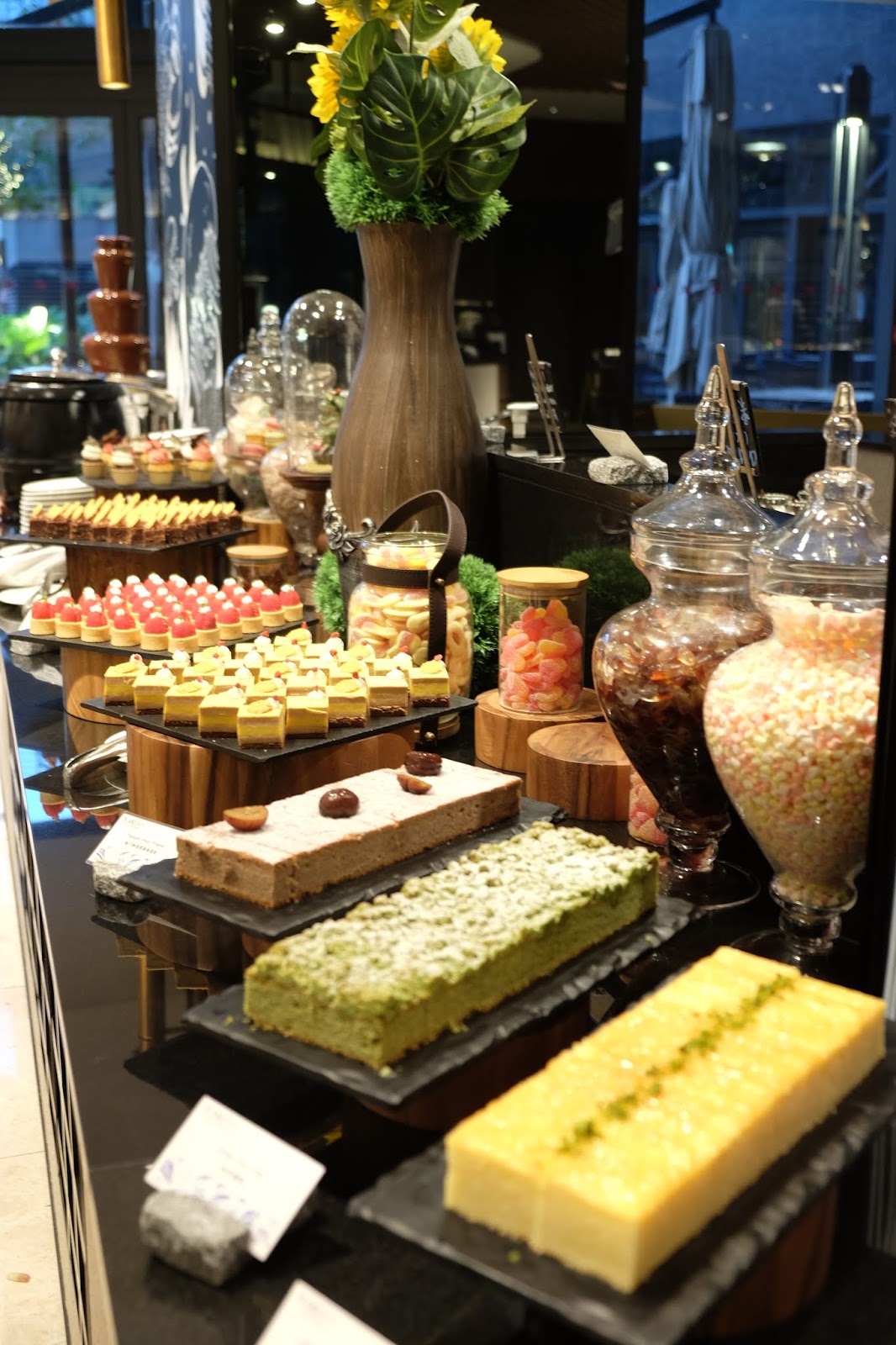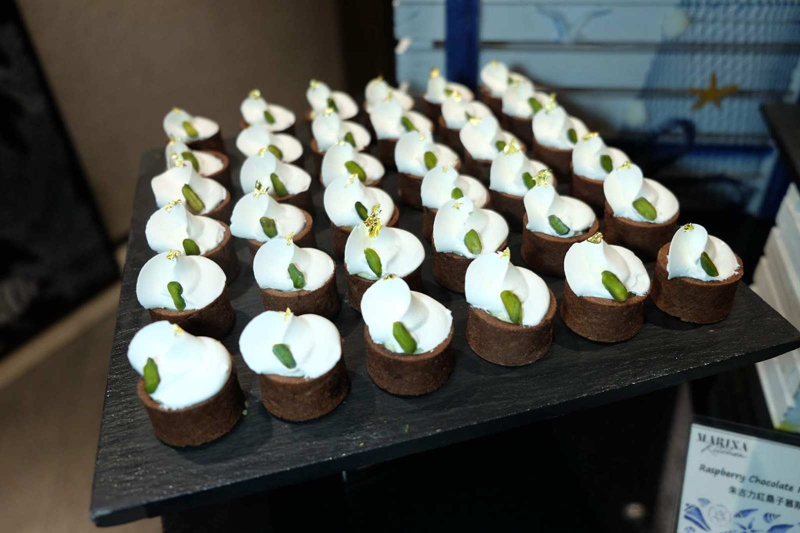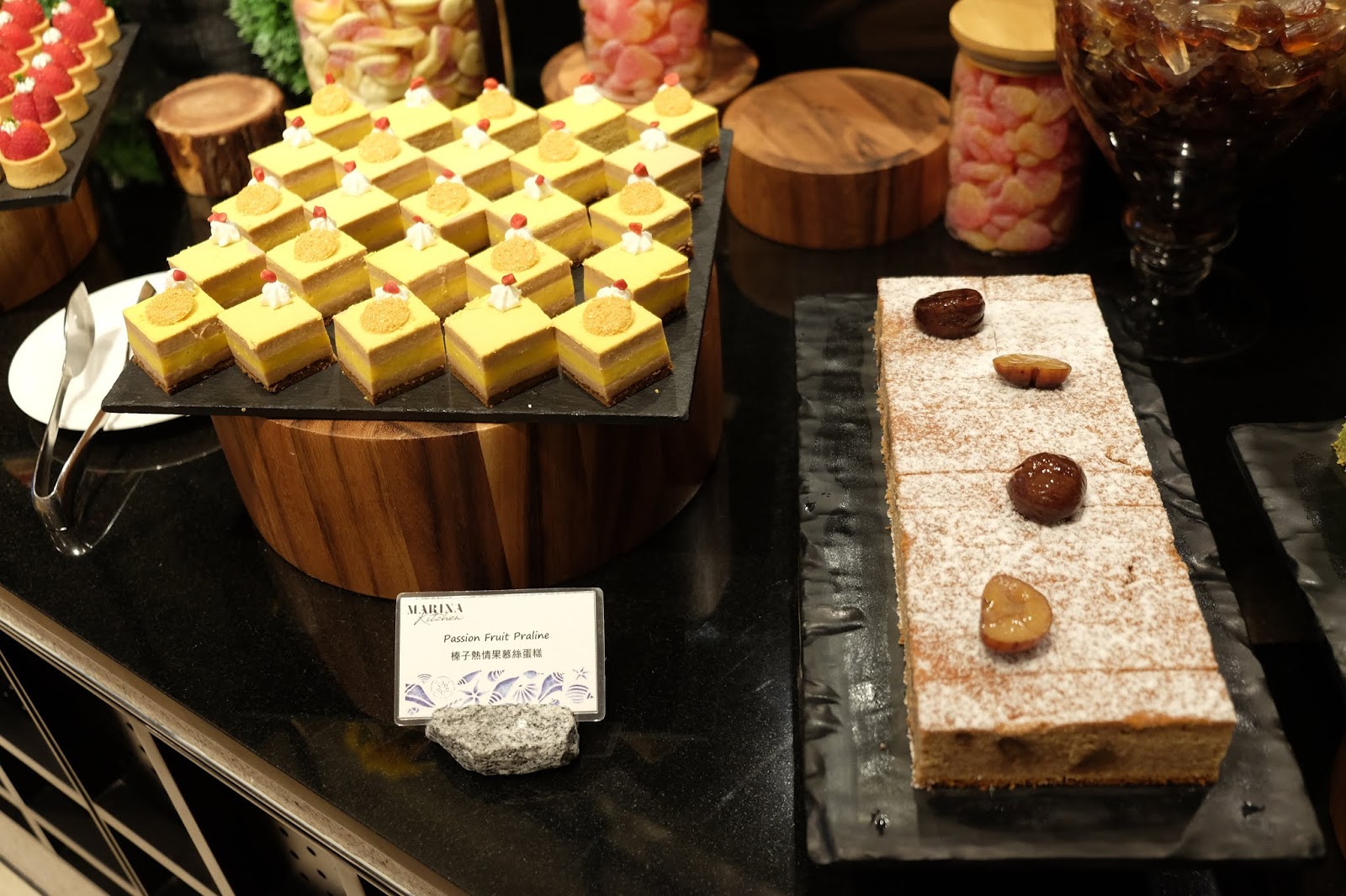 甜品區最吸睛的,莫過於擺放於燈塔模型下的甜品陣,藍莓芝士蛋糕、朱古力紅桑子慕絲蛋糕、青檸撻、榛子泡芙、熱情果榛子慕絲蛋糕、