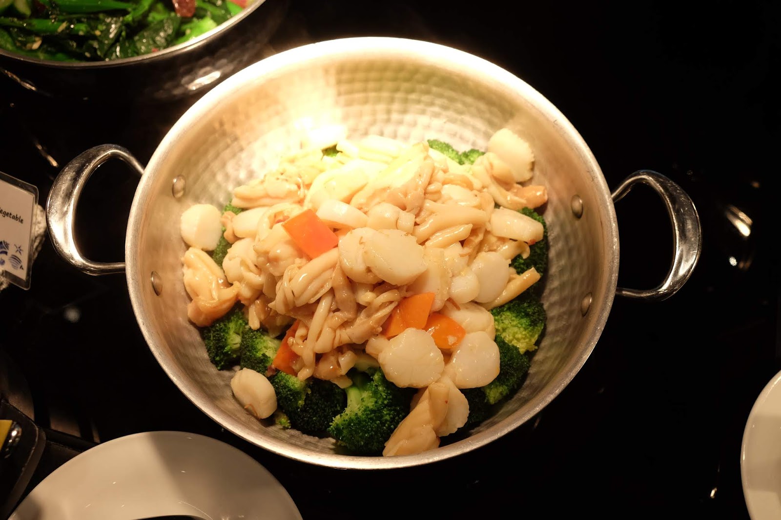 而藍貝肉質嫩滑、翡翠螺及東風螺煙韌有嚼頭、阿拉斯加蟹腳甜美可口,加上花甲及海蝦,陣容比起好多酒店優勝。