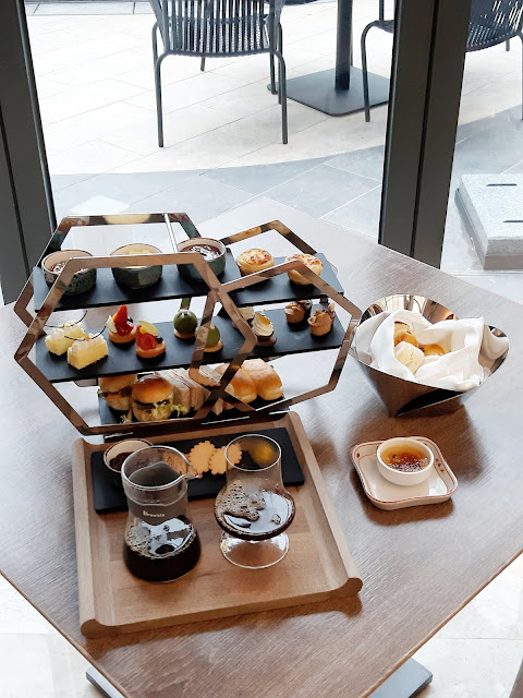 當中包括了五款甜點、四款迷你三文治,配以英式牛油鬆餅及法式焦糖燉蛋。