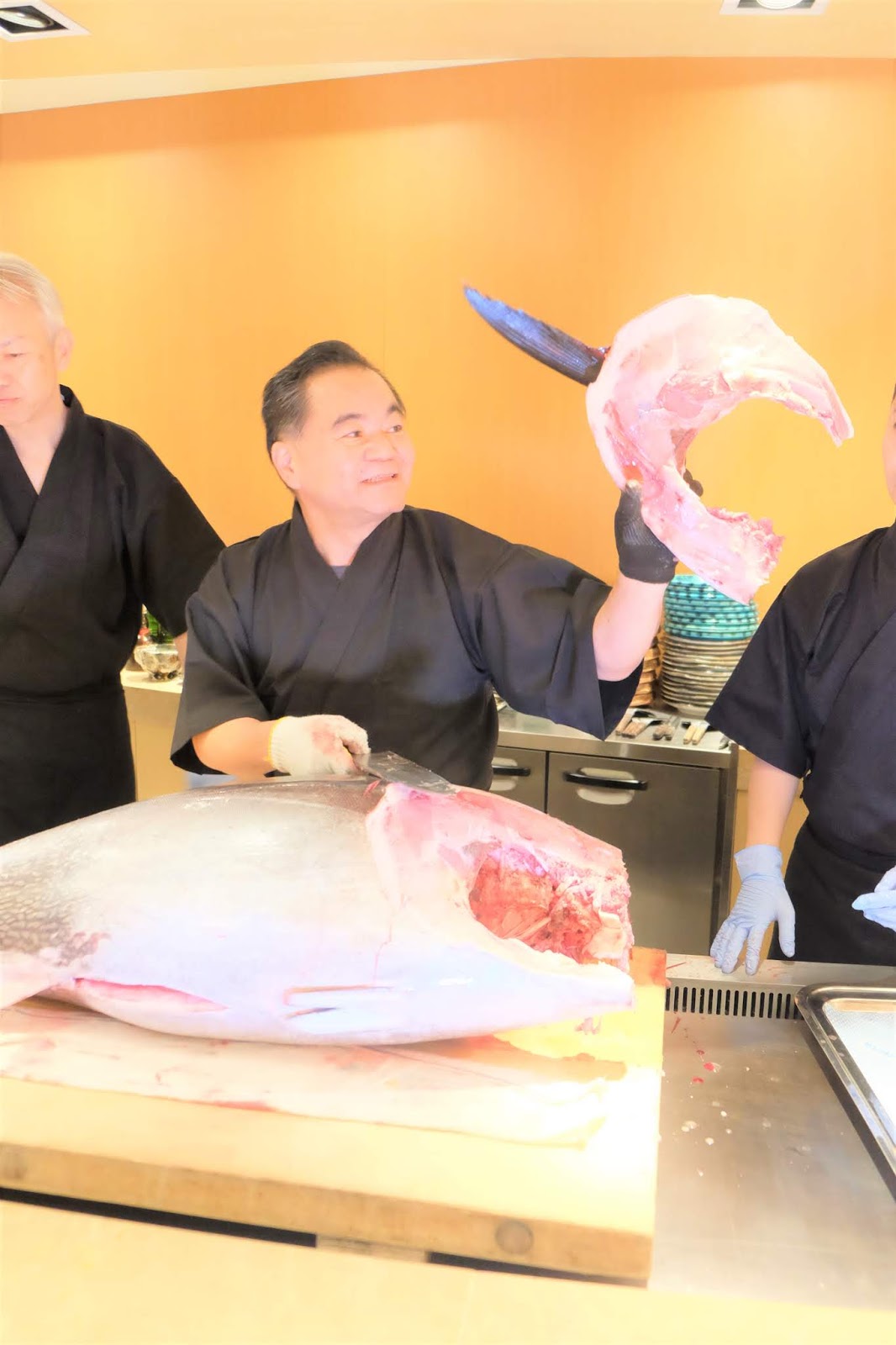 為了隆重其事,餐廳舉辦了「店內席前解魚」 ,就由日式餐廳行政總廚宮迫征弘及兩名副手主理。