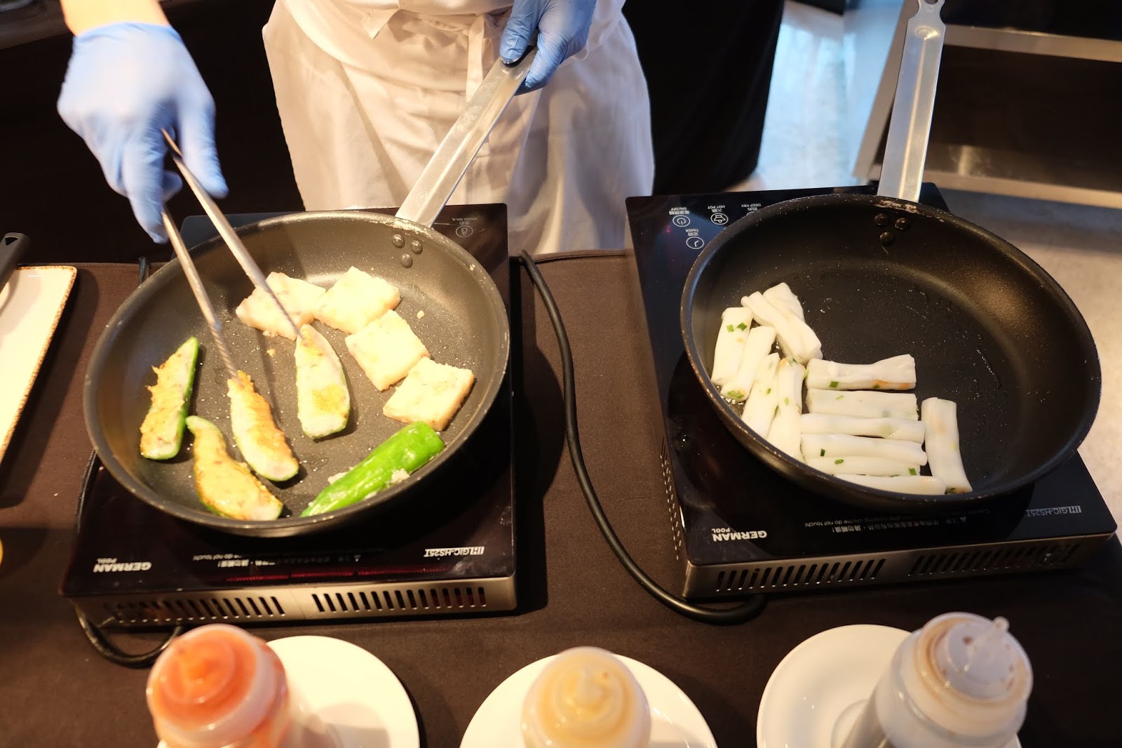 大堂一角,另有即煎由總廚自家出品的蘿蔔糕,只可惜今日紅色暴雨下,煎爐由戶外移至室內,明火煎變成電磁爐,欠了少許鑊氣,但蘿蔔糕煎得外層微焦,內裡蘿蔔絲好香,好期待新年時的出品。