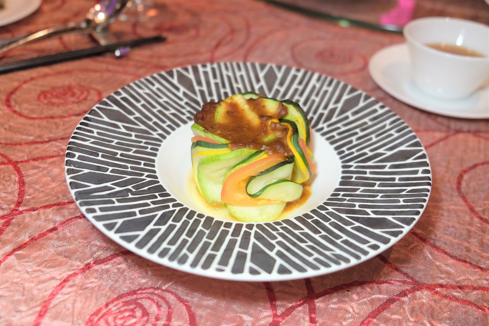 有翠玉瓜、青瓜、蕃茄及小黃瓜,明明菜蔬應該好清新,但食落又好濃味,原來醬汁是由麵豉醬加豆板醬調製,好特別。