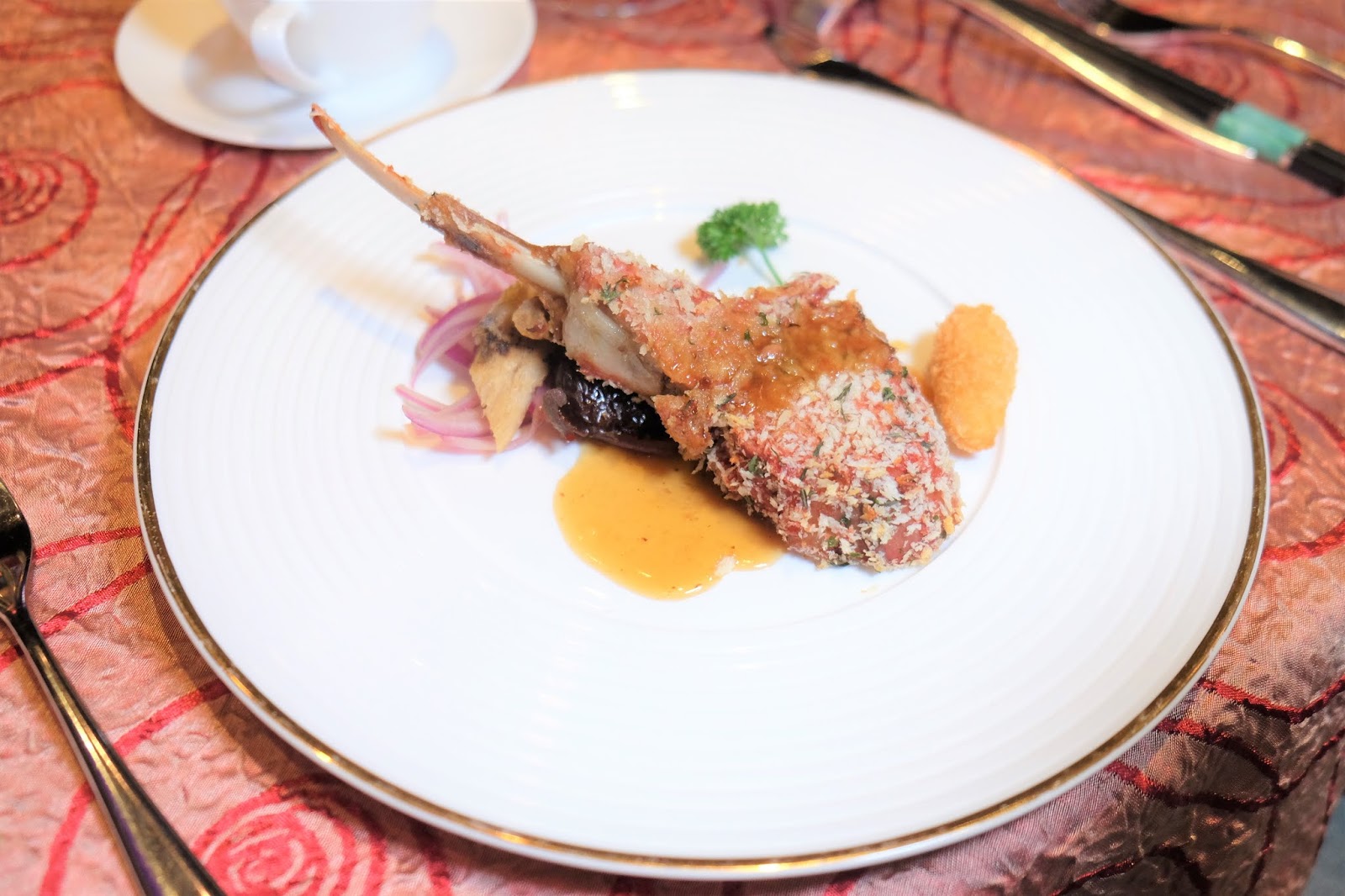 在中菜廳享用西式菜色,卻沒有違和感,尤其是添上藥膳的香氣,中和了羊肉的羶味。