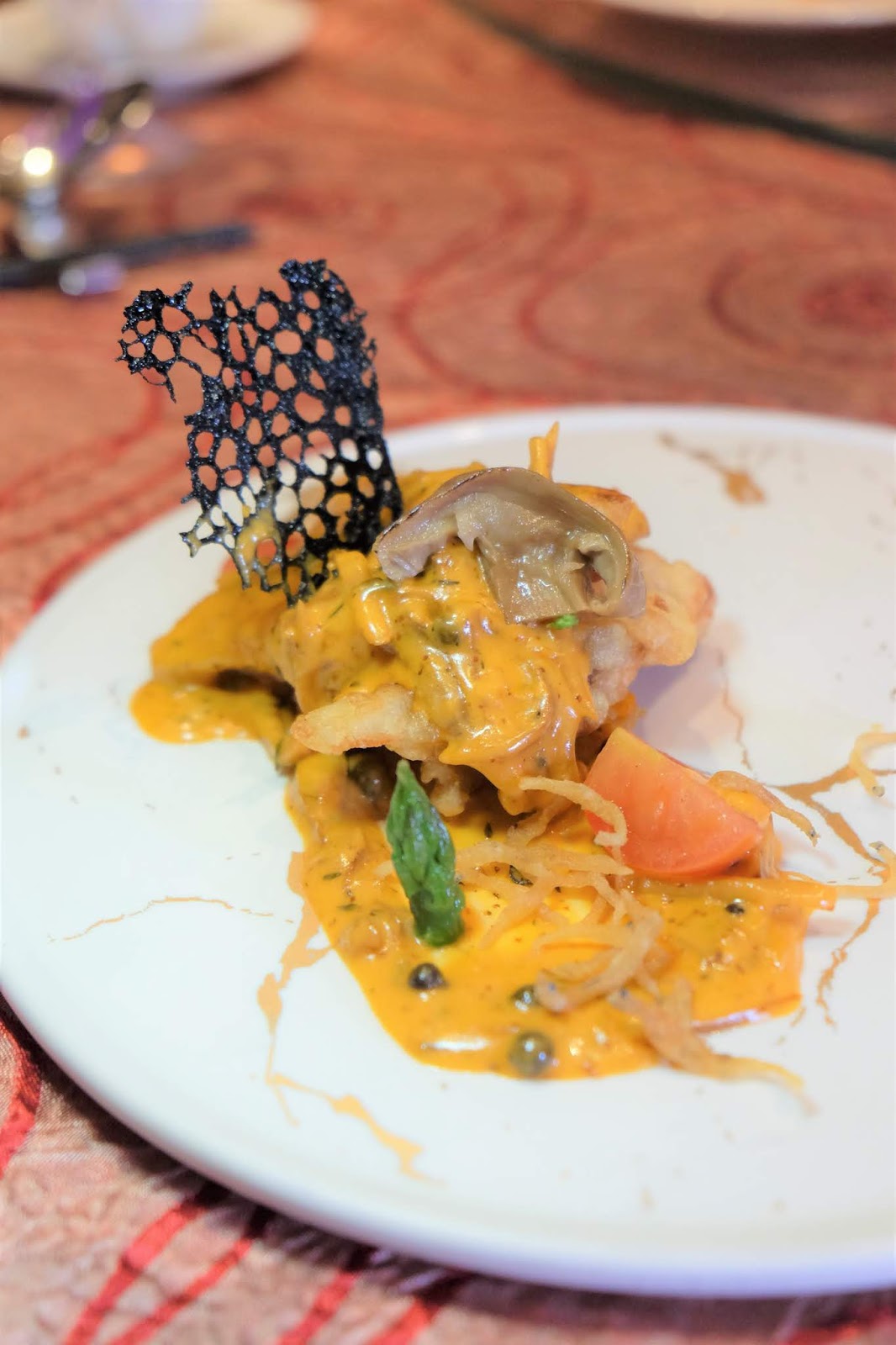 田螺肉質帶點嚼口,墊底的菠菜薯茸焗至外層微脆,內裡軟熟,有腐乳的配搭,在法式食材中,帶來中菜風味。
