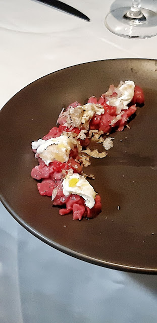 生牛肉他他伴紅桑子、水牛芝士及黑松露