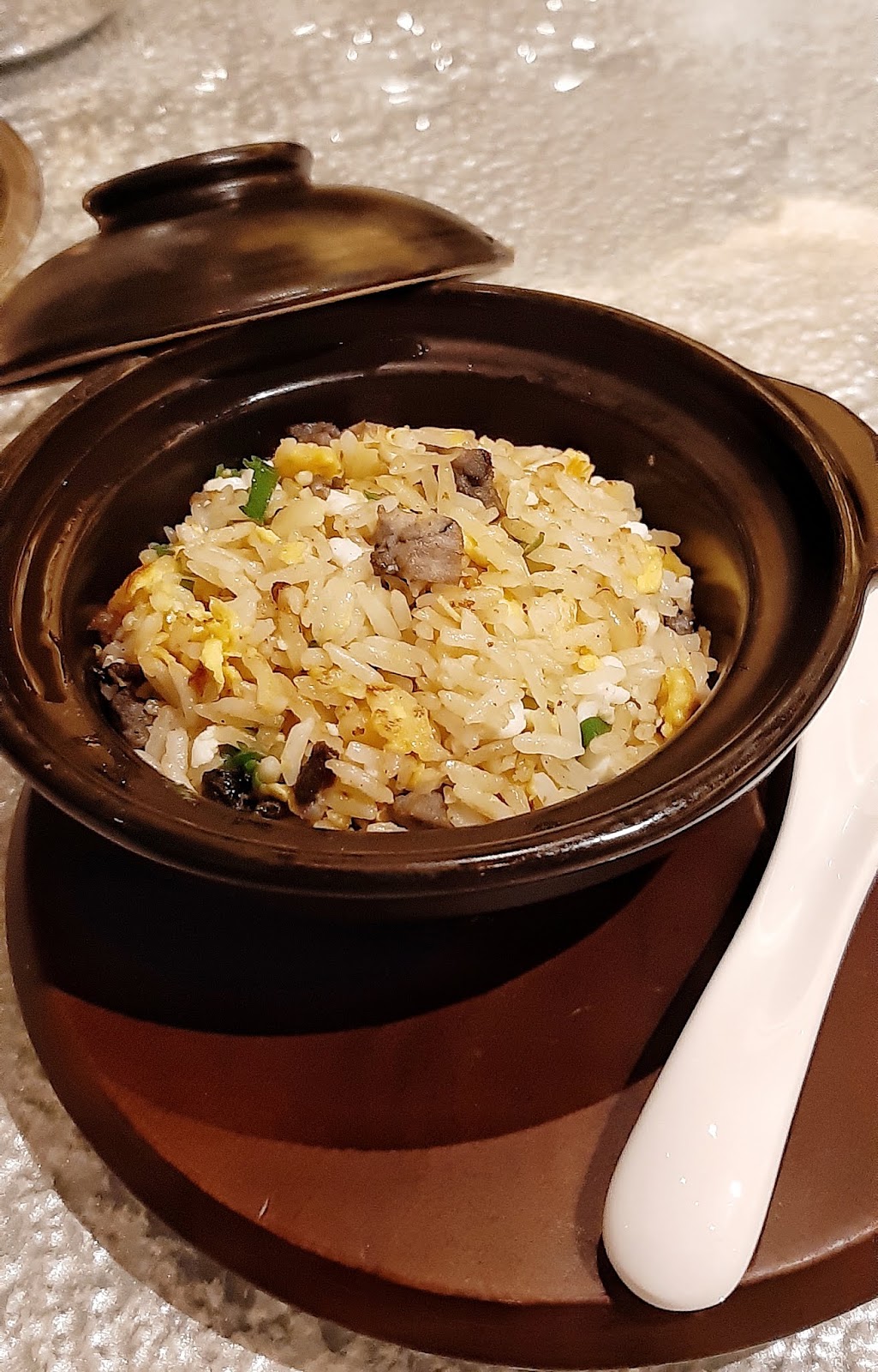 Fried Rice Sizzler, Silkie Chicken, Shao Xing Rice Wine-Scented, Crispy Conpoy.