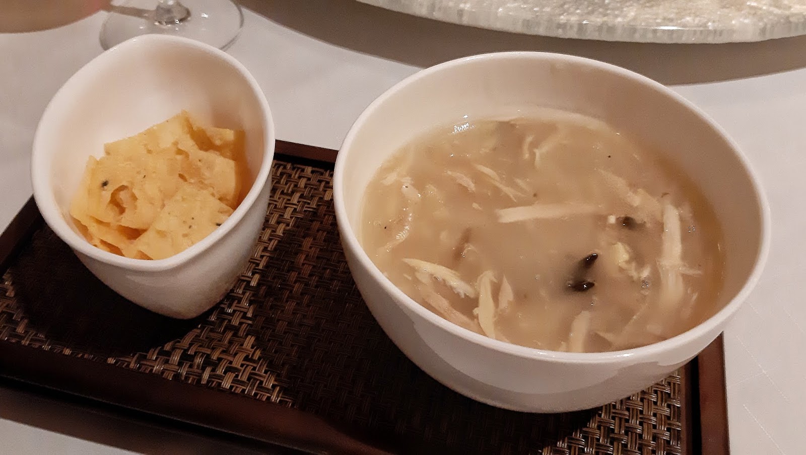 唔知仲以為係蛇羹,花膠雞湯底煮至起帶黏性,花膠及雞肉切得幼細,每口都是精華所在,加上伴碟的薄脆,無論口感及賣相上,都有蛇羹的氛圍。