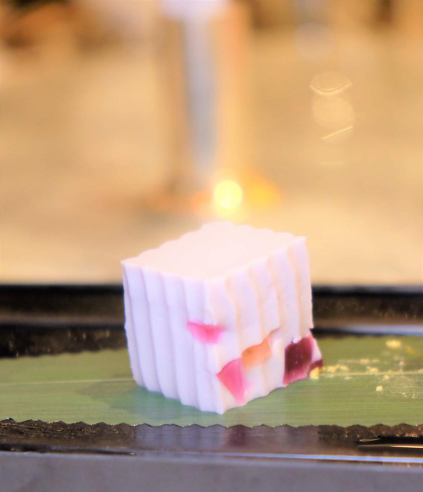 每樣材料刴得細碎,入口陣陣幽香,清新怡人,賣相壓成心心更見細微處。