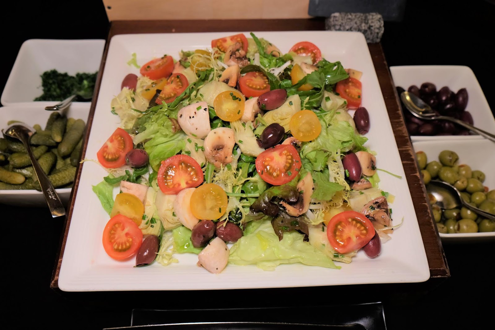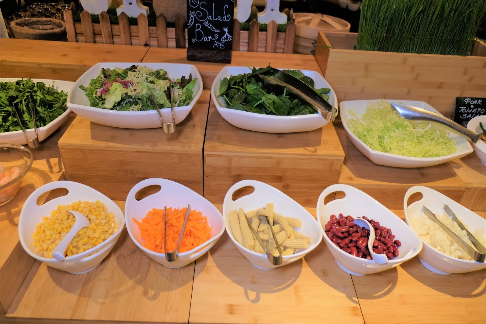 有羊芝士蕃茄沙律、大蝦沙律、豆腐沙律、吞拿魚沙律、薯仔沙律、麵沙律、雞沙律、茄子沙律、甘筍蘿蔔沙律及自家製沙律,種類又多又清新。