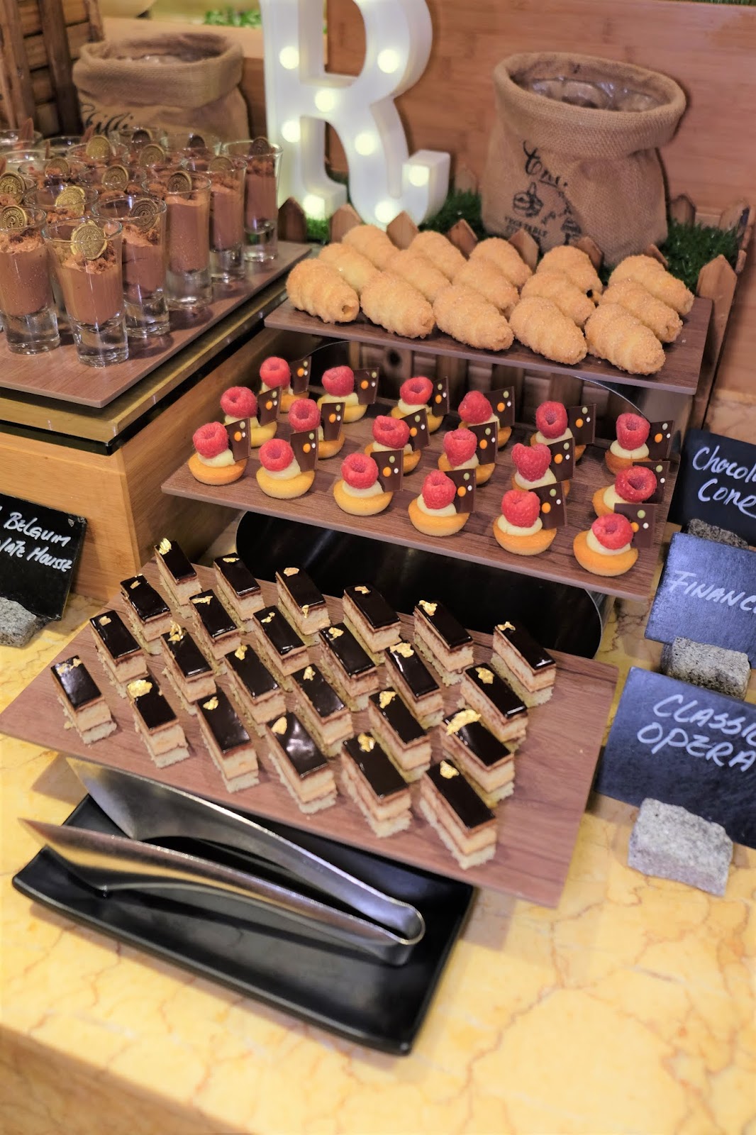另外,更有藍莓芝士蛋糕、咖啡戚風、朱古力松露、朱古力紅莓慕絲蛋糕、芒果慕斯蛋糕、抹茶慕斯蛋糕、朱古力噴泉、歌劇院、Chocolate Cone、Financier、雲呢拿紅莓奶凍Strawberry Short Cake、70% 比利時朱古力慕絲、葡撻、Praline Trifle及紅棗糕,款式又多又甜美,先是一件歌劇院,再來一份甜滑的芒果慕絲蛋糕,睇怕今次又會重幾磅!
