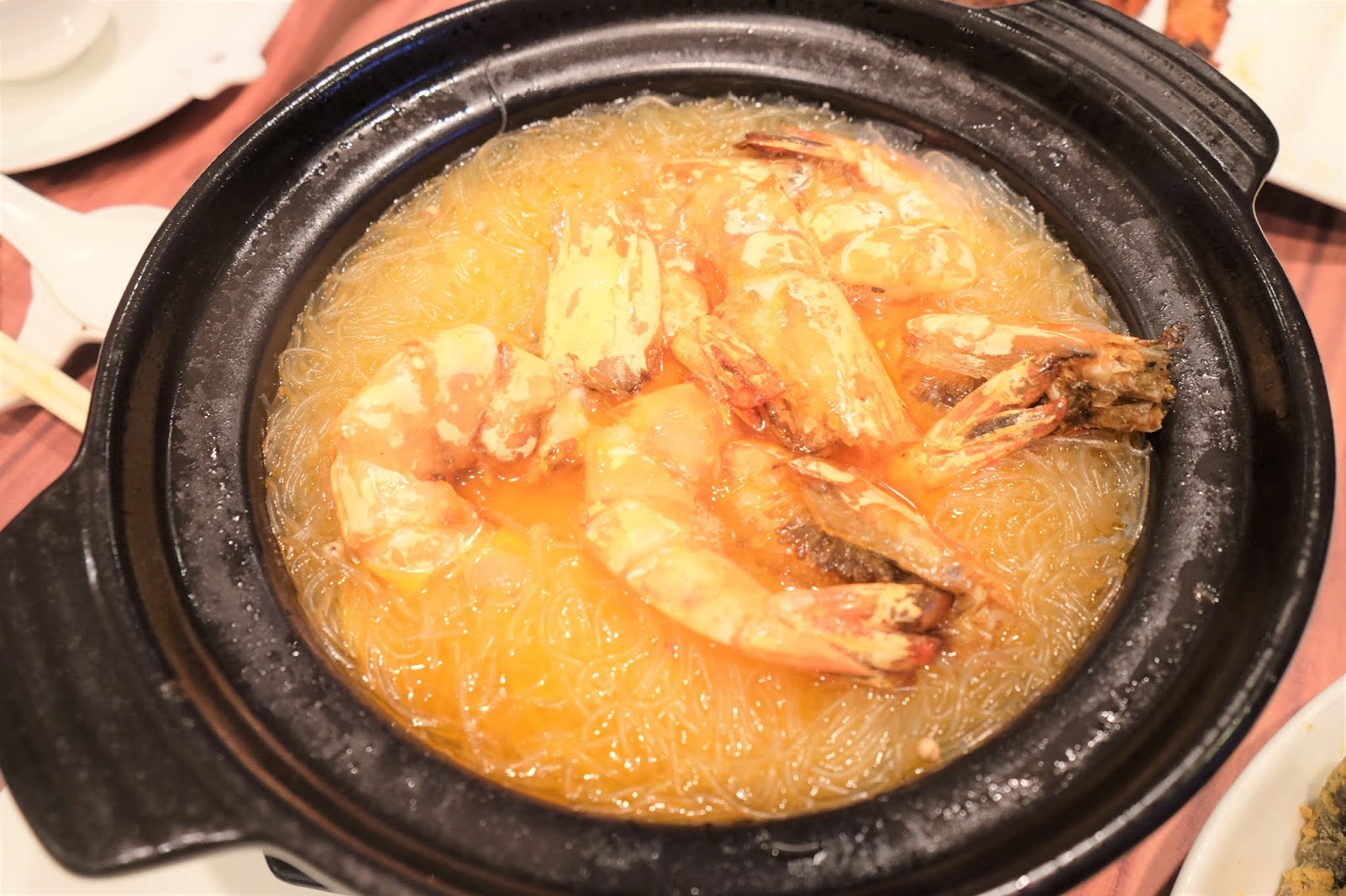 Braised Prawns with Clear Vermiceliin Seafood Broth served in Clay Pot