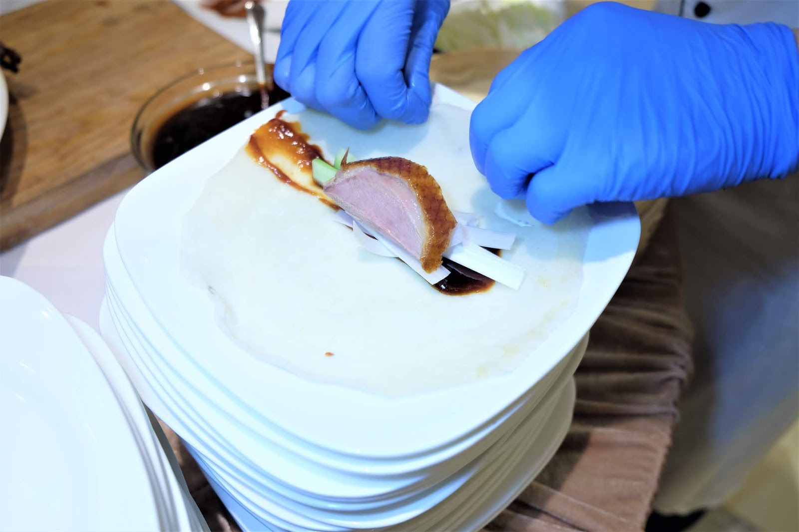 接著上場係北京填鴨,由於酒店本身有中菜廳,填鴨真係熱辣辣,仲要有專人幫妳包好,的確好方便。