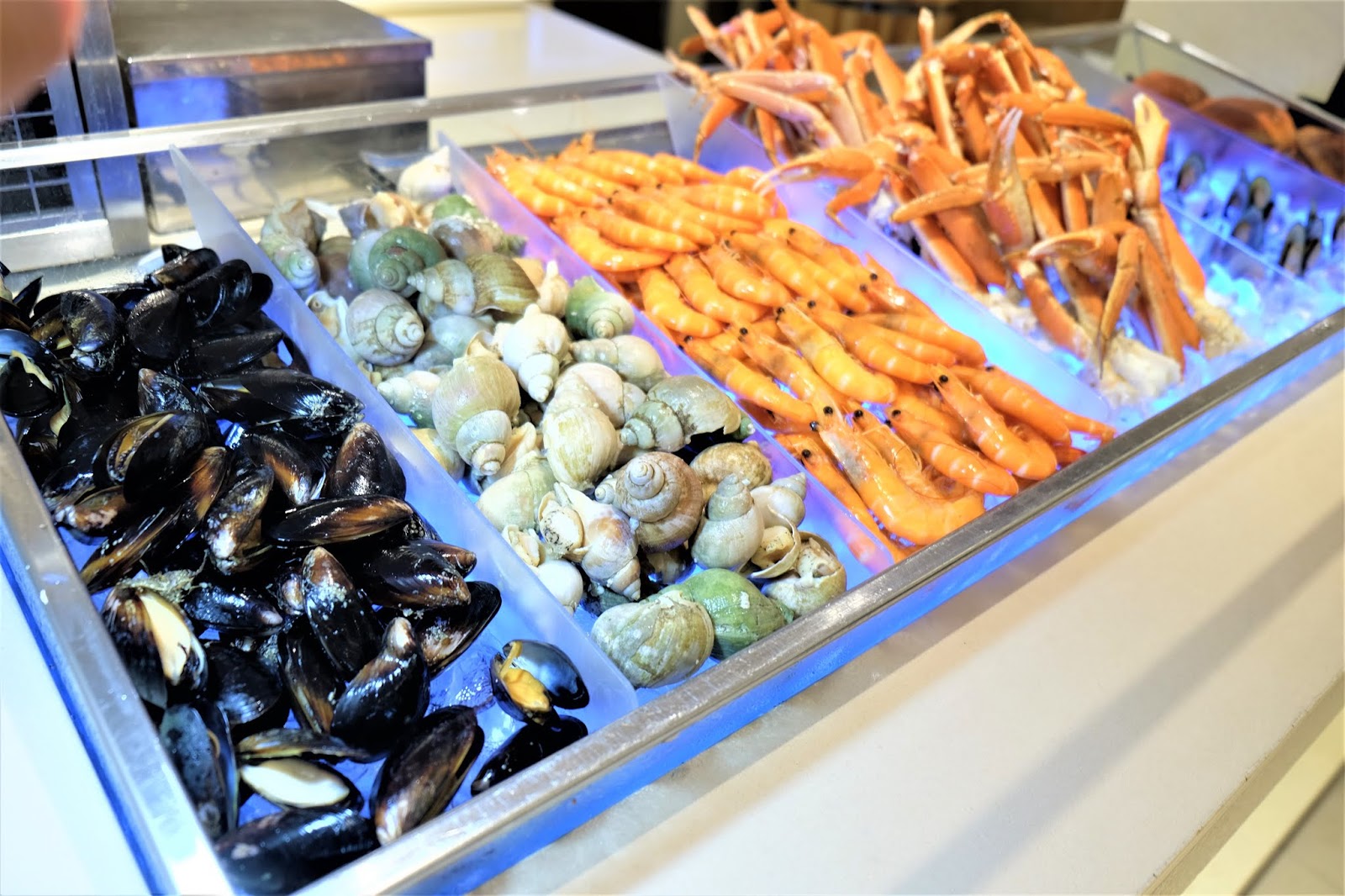 有滿膏麵包蟹;煙韌既翡翠螺;嫩滑既藍貝,仲有青口、蟹腳同凍蝦。