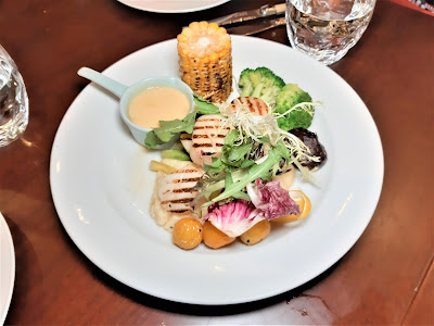 雞皮烤得香口,雞肉部分會比較「鞋」口,但總不會任何食物都十全十美的,個人覺得已合格有餘,加上配搭烤粟米、西蘭花及粗薯條,份量好足,一個人,尤其是女士們,真的難以將整碟消滅。