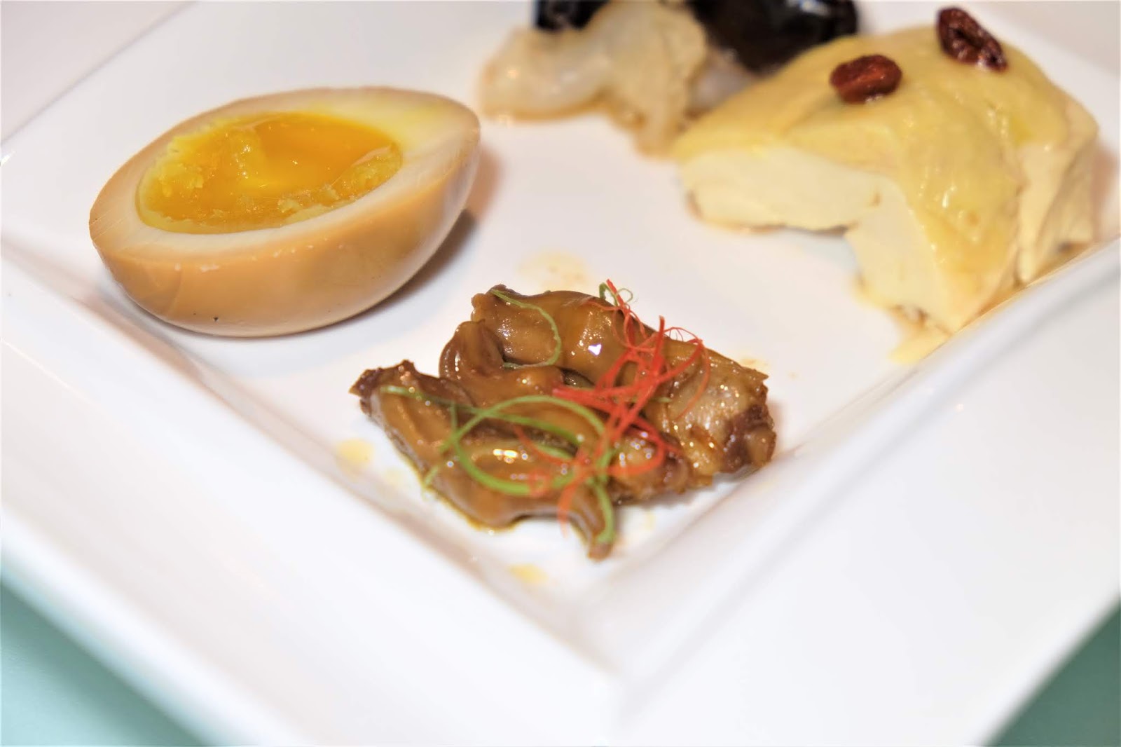 (茶葉燻蛋、杞子黃酒雞、陳醋雲耳海蜇頭及四川風味鴨舌)