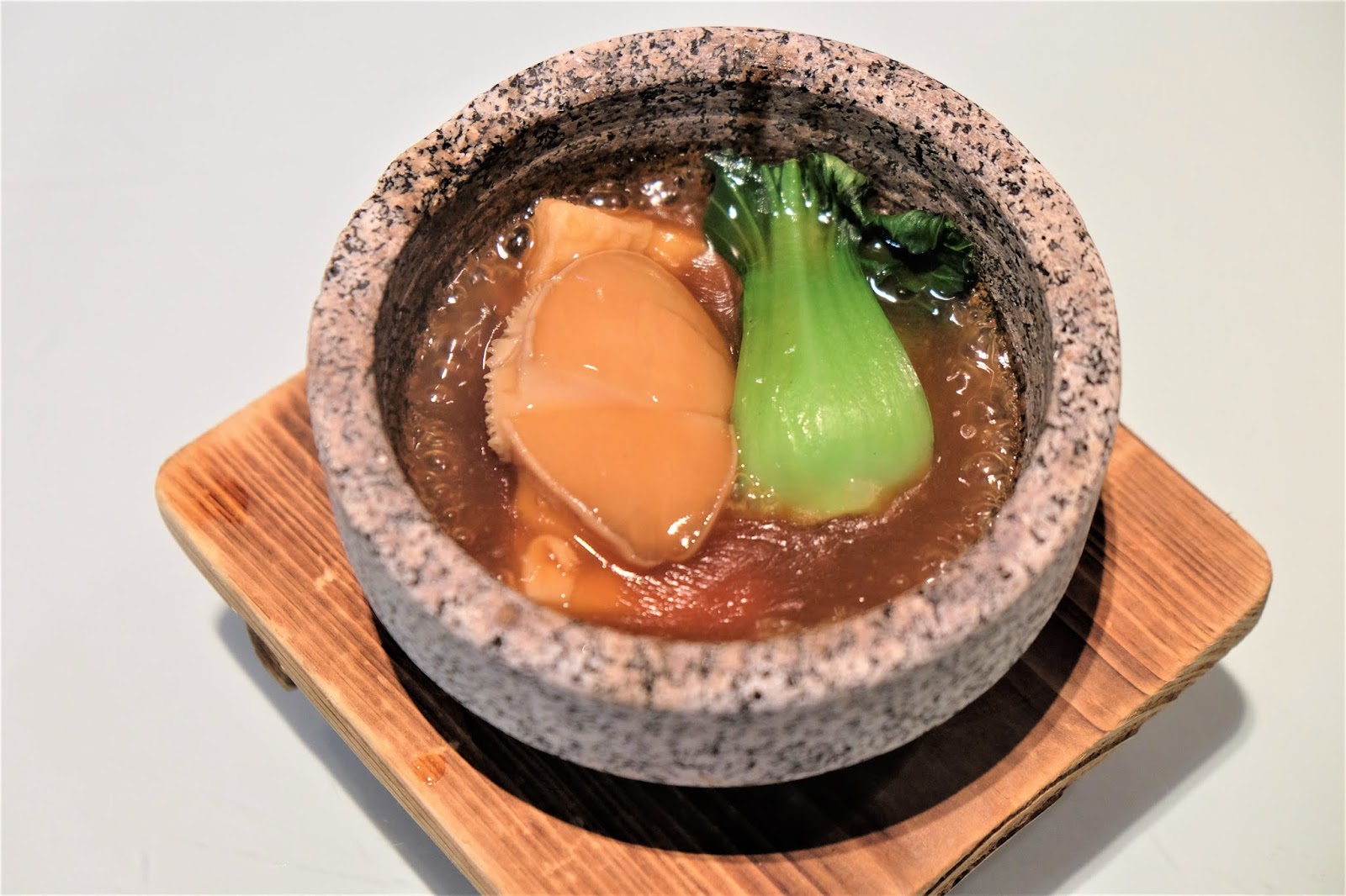 石窩上檯時超熱,真係要小心,鮑魚炆得入味,但肉質依然柔韌,置底的千層腐皮蘸滿了鮑汁,變得非常惹味。
