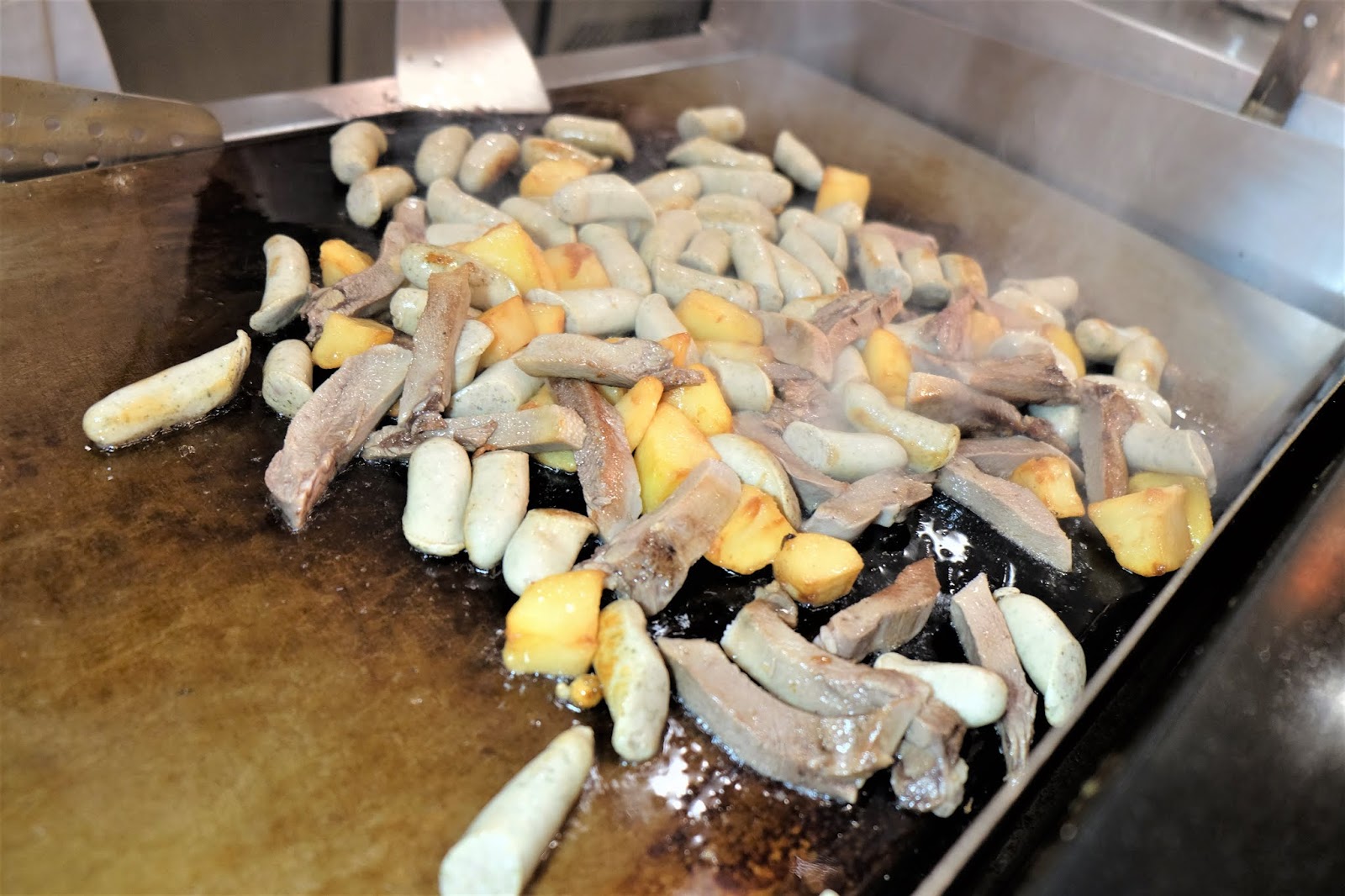 加上鐵板芝士腸仔新薯炒牛舌、吞拿魚薄餅及香草耙素菜。