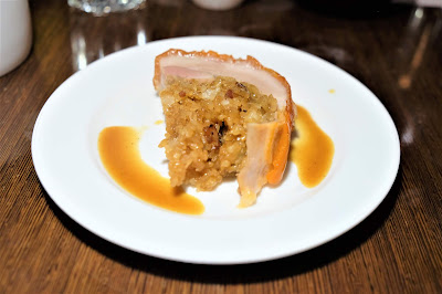 第二樣特別菜色係烤乳豬釀糯米飯,每次只提供兩隻,想食就要留意侍應鈴聲,因為烤得脆卜卜,豬油滲入飯粒好香口,必食。