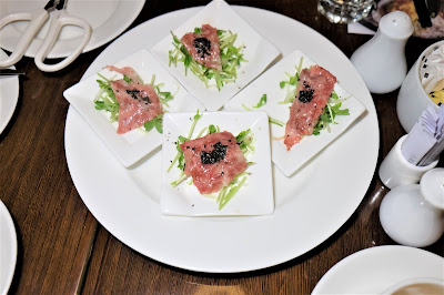今次主題係「和牛」,首選黑松露生和牛薄片拌青瓜卷,在油香中帶清爽的口感,不錯。