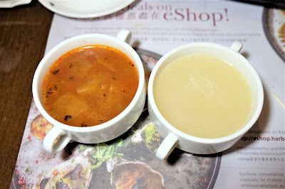 有三點蟹、瀨尿蝦、海蝦、太子魷魚、砂白及藍貝滾海鮮湯,湯底越滾得耐就越濃味,不妨中段時間先拎。