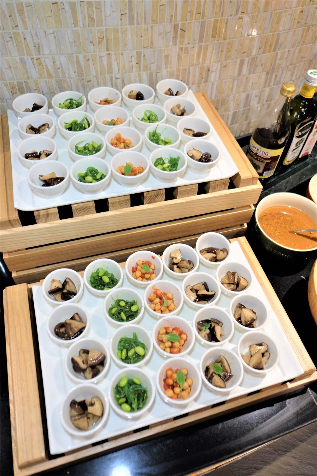 特設的素食區,的確適合部份人士,提供了日式炒野菜、橄欖油炒粟米粒、蟲草花芹菜炒雙菇、雞㙡菌炒青瓜、鮮茄香草燴鷹嘴豆、燒汁煮鮮菇及味付海帶枝豆。