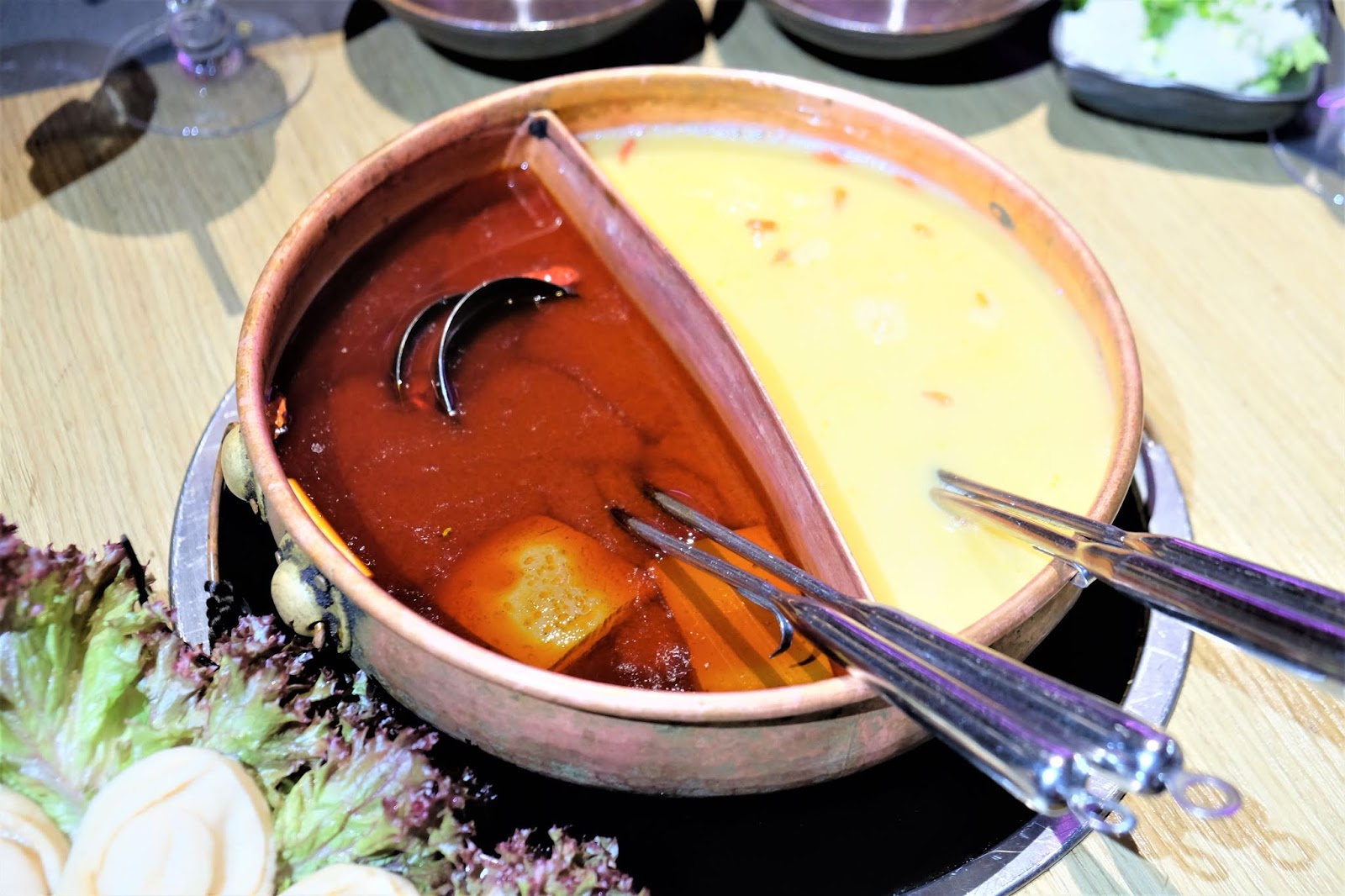 兩種不同鍋底,好啱唔同既朋友,但店員建議開餐前飲返啖湯,尤其是花膠湯底,濃稠得放低一兩分鐘,表面已經起薄膜,真誇張,至於名物麻辣湯底,更是由水果蔬果熬煮而成,大口大口呷都不會嗆喉或涸喉,好正。