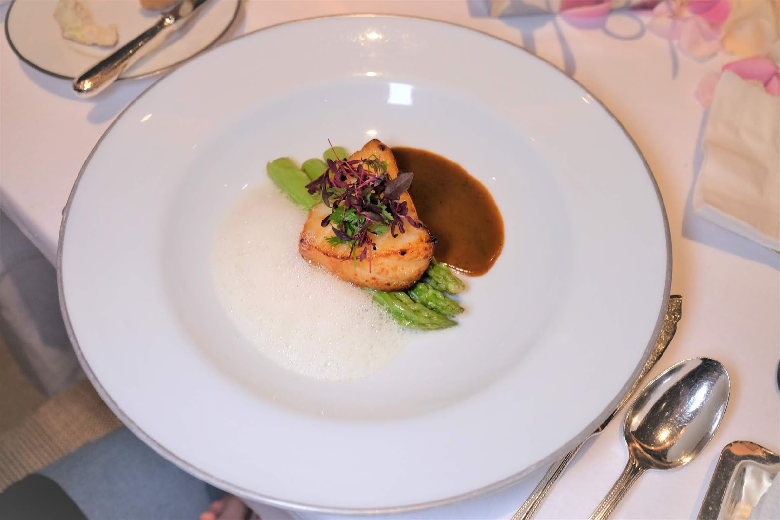 味噌烤黑鱈魚,Malabar 胡椒汁配椰子泡沫及青蘆筍