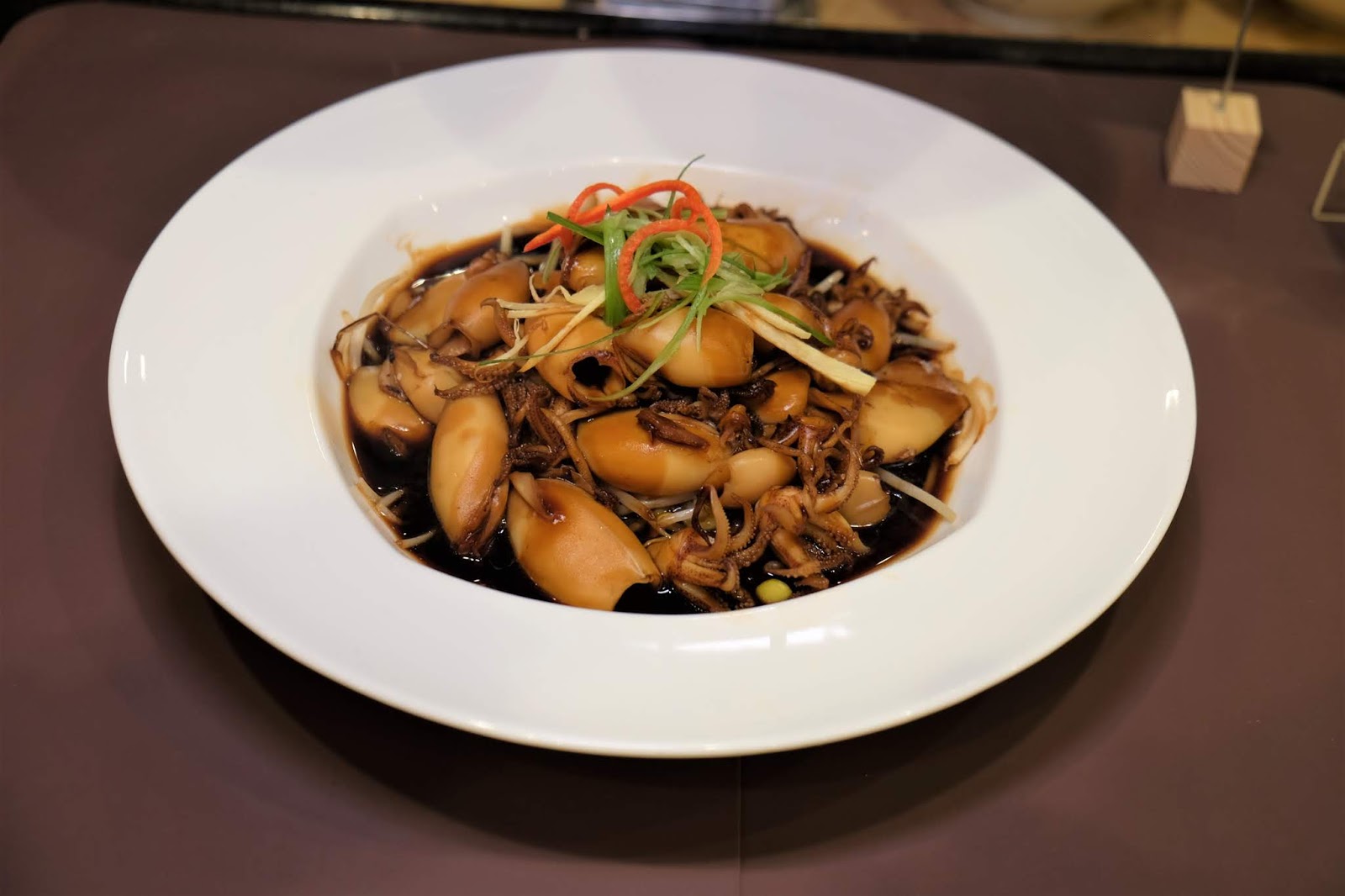 每位客人可抽機會卡,今次係鮑汁扣花膠,花膠扣得軟稔入味,膠質感重夠滋補,好啱女士。