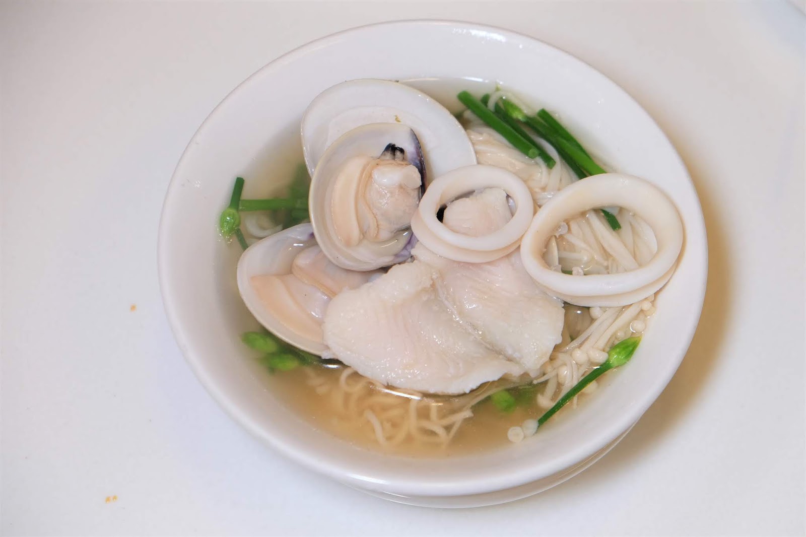 配料有砂白、魚柳、魚片及墨魚,而麵底是公仔麵、米粉及油麵,其他什類是金菇、豆卜、墨魚丸、牛丸 、韭菜花、油麥菜及白菜仔,對於澱粉怪既在下,當然要來一碗。