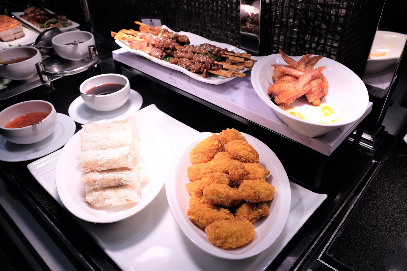有印式魚肉沙律、泰式鳳爪、薯仔沙律、吞拿魚沙律、蠔油齋上素、甜酸齋上素、中華沙律及日式螺肉、蟹肉啫喱、海鮮紫菜蛋卷、煙三文魚、雜肉腸、黑椒吞拿魚及蕃茄肉伴軟芝士意大利黑醋汁。