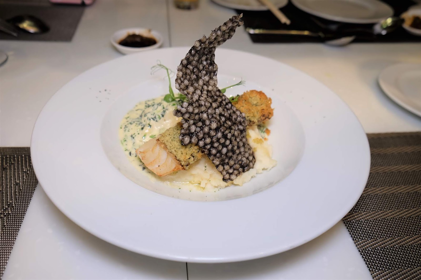 銀鱈魚毫無碎骨,啖啖肉好啱自己這等懶人,蘸點一下香檳汁更覺甜美可口。