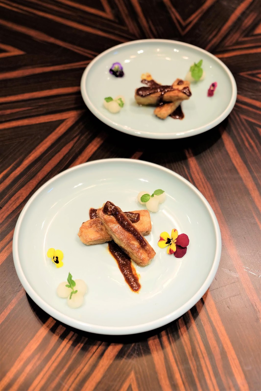 外層帶微脆,內裡軟綿,油香比預期中少,但伴碟的辣醬,估不到與鵝肝好合襯。