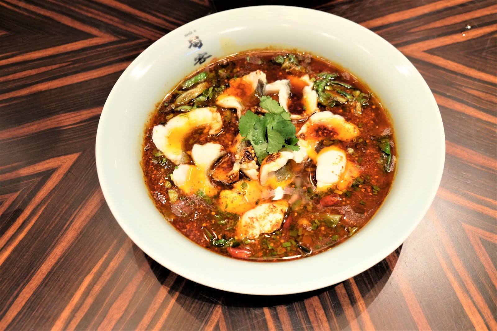Braised slice mandarin fish in red chili broth