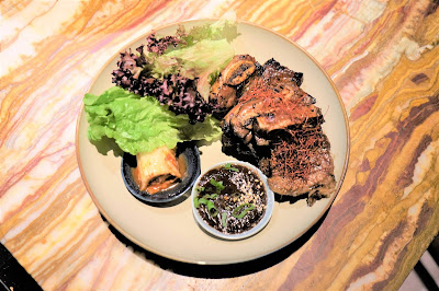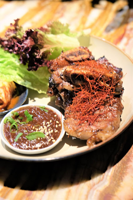 充滿了韓風,尤其是伴碟放上了泡菜,自己會先起肉,然後用新鮮生菜包起,加入泡菜及韓式醬汁一齊食,清新與油香夾雜,令人回味無窮。