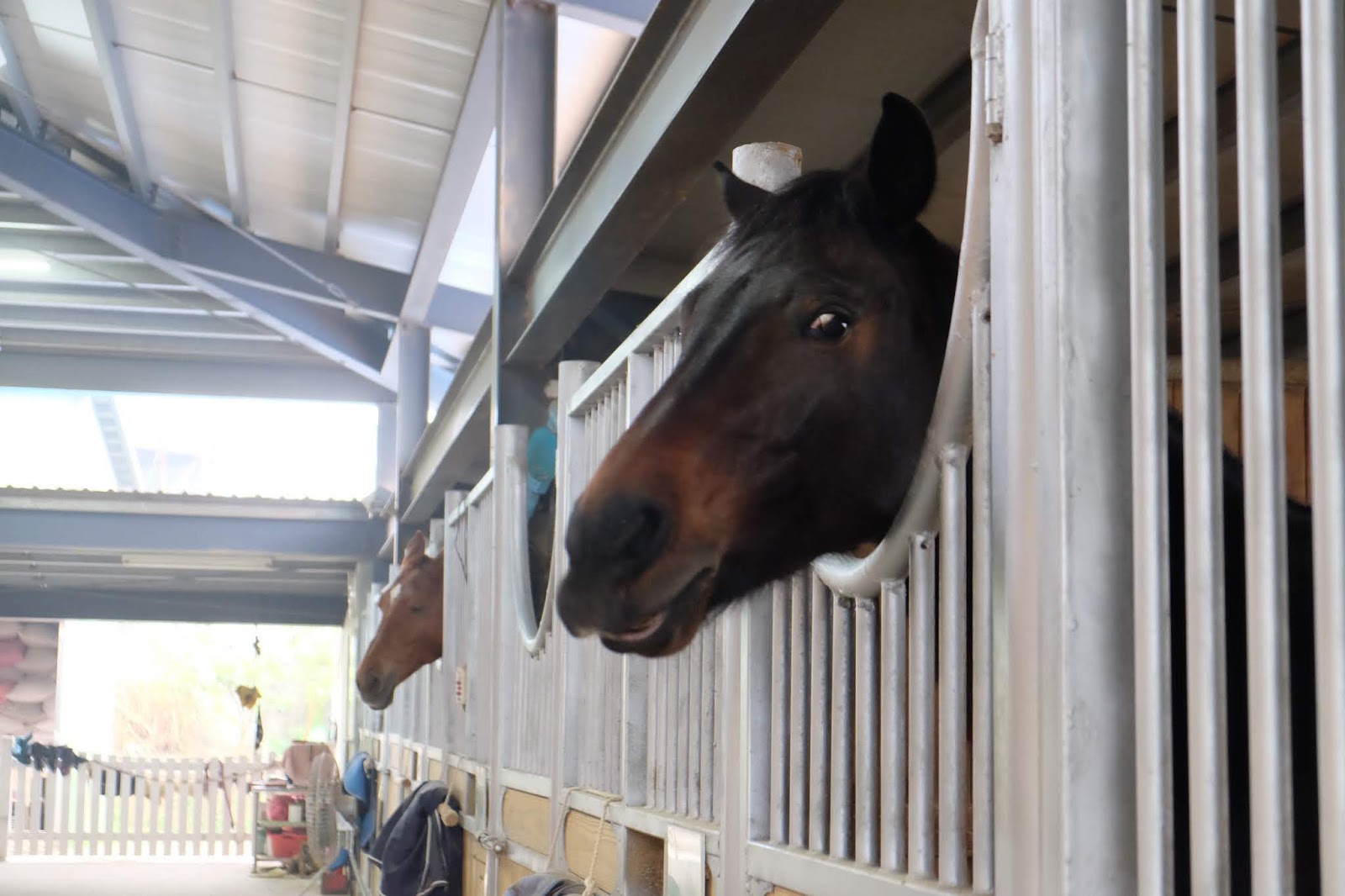 馬房所有馬匹都有獨立空間,地方大而且空氣流通,所以不覺有異味,用作表演馬匹好乖巧,任摸任攬都得。