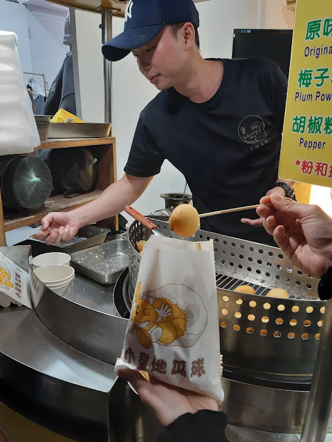 掃街是必然的事,地瓜丸即炸即食,正到無朋友,蚵仔麵線是個人喜好,仲有烤魷魚,再加杯白苦瓜汁,好豐富的宵夜。