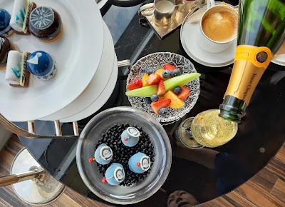 下午茶位於酒店33樓,樓底特高而開揚,全落地玻璃,讓自然光透入,氛圍謐靜舒適,靠窗大多是二人桌,就算是平日,依然有不少少女跟閏蜜在聊天。