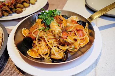 原先想點Alio Oilo,但服務員大力推薦,果然是別有風味,尤其是配料多,質素又好,有大蝦、帶子、藍貝蜆及車厘茄,意大利麵條煮至個人最喜歡的
