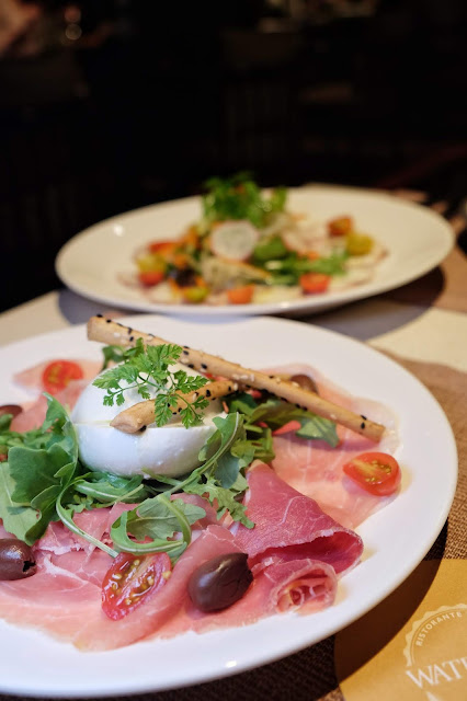 再來是水牛芝士配巴馬火腿及火箭菜,陣陣豐盈的奶香,在舌尖縈繞,配以鹹香的火腿,卻沒有絲毫的違和感。
