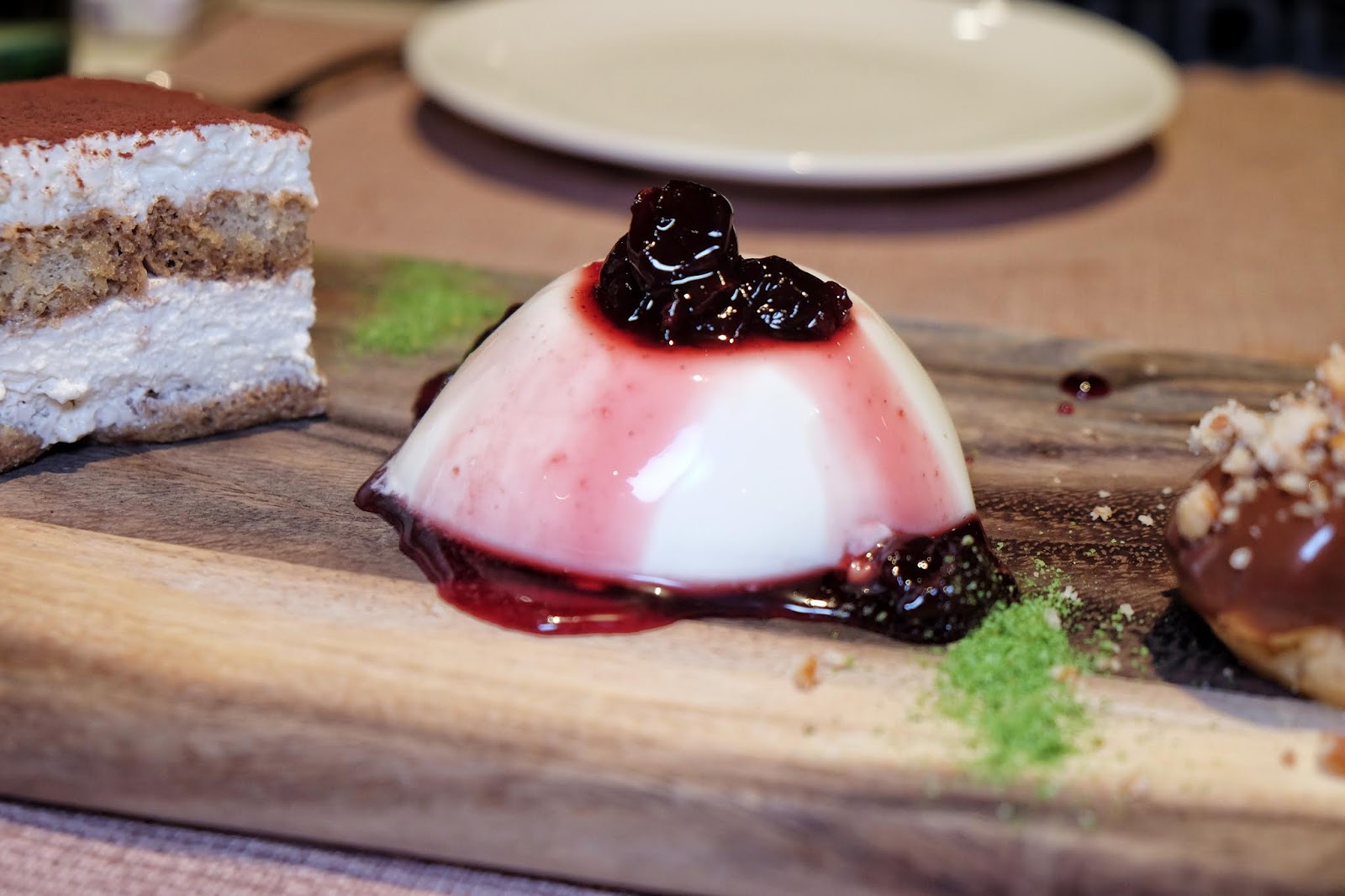 Tiramisu是預期中的濕潤鬆軟,無可挑剔,一下子便攫取了我的心;Profiteroles中間注入了吉士醬,感覺有點淡淡的橙香;至於芒果奶凍,質地幼滑,芳香馥郁,而壓軸的 Parfait,更是不得了,軟綿幼滑,芳香甜美,一流。